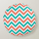 Coral, Teal, White Large Chevron ZigZag Pattern Round Cushion