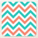 Coral, Teal, White Large Chevron ZigZag Pattern Square Paper Coaster