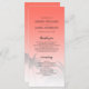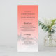 Elegant destination wedding program with a tropical palm tree design on a sunset coral background featuring elegant script and modern typography. The bright coral fades onto a white background. Simply add your wedding details to this stylish tropical beach wedding program. Exclusively designed for you by Happy Dolphin studio.