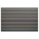 This design features stripes coloured coral, turquoise, dark red, teal, and black.