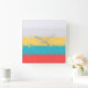 Coral Turquoise Yellow White Stripes Square Wall Clock