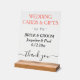 Wedding cards and gifts is written in pretty beachy coral typography. For the bride and groom is written in black typography against clear background. Insert Couple's Names and Date of Wedding. Elegant wedding reception table display. Thank you is written in black script. Designs by TamiraZDesigns.
