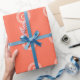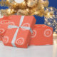 Coral White Greek Key Rnd Frame Initial Monogram Wrapping Paper