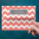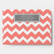 Elegant peach orange pink, grey and white A7 greeting card envelope with stylish and retro chevron zigzags stripes pattern. Customise it with your return address. Available in matching cards and many other wedding products.
