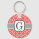 Coral White Monogram Letter G Quatrefoil Key Ring
