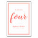This design was created for smaller intimate wedding celebrations. Simple, minimalist and elegant Wedding Table Number FOUR design features a contemporary design with a double frame border in LIVING CORAL on a crisp white background. The chic design provides timeless yet modern sophistication. Personalise wedding table design with your wedding details in trendy Living Coral lettering and script. The back of the card is a duplicate of the front. Order one for every table with the individual table numbers.