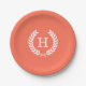 Coral White Wheat Laurel Wreath Initial Monogram Paper Plate