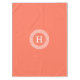 Coral Wht Greek Key Rnd Frame Initial Monogram Tablecloth