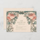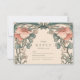 This elegant wedding design features coral-toned wildflowers woven through a flowing Art Nouveau frame. The subtle contrast between blush reds and muted greens creates a romantic yet refined atmosphere, ideal for spring or summer weddings with a vintage botanical theme.