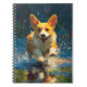 Overflowing with energy and joy, this notebook cover features a corgi leaping through water with boundless enthusiasm. The bold, painterly strokes and rich colors capture the excitement of play and adventure, making it an inspiring choice for notes, journaling, or sketching. Perfect for corgi fans and anyone who loves lively, cheerful artwork.