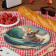 Immerse yourself in the playful world of canine adventure with this captivating painting. A spirited dog takes to the waves, skilfully riding the surf on a sun-kissed beach. The vibrant artwork beautifully captures the essence of beachside excitement as the dog fearlessly rides the waves, embodying the spirit of fun and freedom. With a harmonious blend of colours and dynamic brushstrokes, this piece brings the joy of surfing and the beach right into your space, making it a delightful addition to any art collection