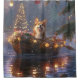 Set sail into the magic of the holiday season with this beautifully detailed illustration, showcasing a proud dog sitting in a festively decorated boat, gliding across a serene Christmas lake. The twinkling lights from nearby pine trees reflect off the water, casting a warm, festive glow that enhances the cosy ambiance. Ornaments dangle from the boat's sides, while glowing lanterns light the way, creating a scene that captures the true essence of Christmas warmth and joy. This nostalgic artwork brings a touch of holiday magic to any space, perfect for those who cherish the spirit of the season.
