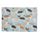 Cute Corgi dogs with fawn, red and tri coat colours with paw prints and dog bones pattern.