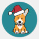 Corgi dog puppy Pembroke Welsh Christmas Santa hat Classic Round Sticker