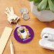 Create a personalized gift that's perfect for corgi dog owners or anyone who loves dogs. This keychain features a cute close-up style illustration of a corgi's face surrounded by pretty flowers in orange, yellow, white and lavender. The graphic is set against a purple background and there's a spot to add a name in bold lavender colored lettering.