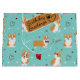 Corgi Love Cartoon Pattern with Custom Greeting Large Gift Bag