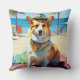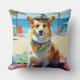 Corgi on Beach, summer gift for dog lovers Cushion