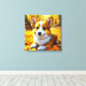 Corgi Puppy Dog Playing in Fall Leaves Canvas Print
