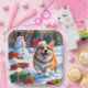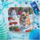 A cheerful Corgi runs playfully through the snowy winter scene, wearing a festive red Christmas hat. This joyful design highlights the breed’s short legs, fluffy coat, and lively personality while capturing the warmth and charm of the holiday season. A heartwarming winter moment full of festive spirit.