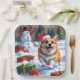 Corgi Running in Snow with Christmas Hat Paper Plate
