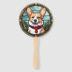 Corgi Stained Glass Christmas Hand Fan