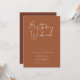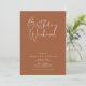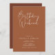 This birthday weekend invitation and itinerary template features an edgy handwritten font and modern minimalist design with a boho terracotta and white colour combination. Easily edit all colouring to match your event and add any photos or graphics as needed.