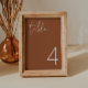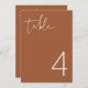 This wedding table number features an edgy handwritten font and modern minimalist design with earthy bohemian burnt orange colouring. Easily change the number to create all your table numbers. All colours are editable.