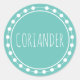 Turquoise coriander spice label stickers with a whimsical typeface. When your spice jar labels get worn and stained, refresh them with this cute style spice jar label.
