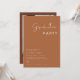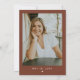 This graduation party invitation template features a modern gender neutral design for men and women with a modern, minimalist font and layout and a boho earth toned terracotta and white colour combination. Use this template to edit the fonts, font colour, and background colour to match your event needs. Easily add your own photo onto the backside for a unique personal touch.