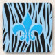 Light blue and black zebra print stripe pattern with a blue fleur de lis (fleur-de-lis) in the center. Trendy fleur de lys (fleur-de-lys) graphic for girls that like French inspired gifts or women that love chic animal print patterns.