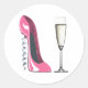 Corkscrew Pink Stiletto Shoe and Champagne Glass Classic Round Sticker