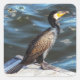 A Cormorant sitting on a wooden jetty at Cardiff Bay, Cardiff, Wales.