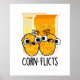 Corn-flicts Funny Corn Flakes Pun features a cute pair of cornflakes having a conflict. Perfect pun gift for family and friends who love cute cornflakes puns.