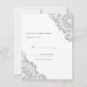 Ornate scrollwork in pale grey decorates the corners of this wedding reply card to frame your customised text. A classic, soft look for your special day. Available in alternate colours with matching products.