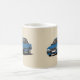Blue French classic car from the 80's. Two blue Peugeot 505 car illustrations on a coffee mug. Great gift for retro Peugeot fans. Customize mug style and background color.