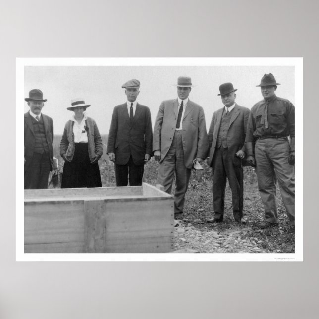 A classic photograph from the Alaskan documentary efforts of Frank G. Carpenter. This commemorative poster print features a View of people watching the laying of the cornerstone of the Agricultural College and the School of Mines, later known as the University of Alaska, Fairbanks, taken in 1916.