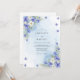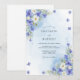 This ethereal design features a serene wash of cornflower blue watercolor. Delicate delphinium blooms and white anemones are paired with soft sage green foliage for a light, airy feel. These painterly botanical elements create a romantic and sophisticated atmosphere perfect for a spring or summer event.