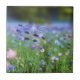 A field of cornflowers in shades of deep and pale blue, purple, lavender, and pink, with pale green leaves.