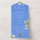 Cornflower Blue Greenery QR Code Monogram Wedding All In One Invitation