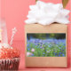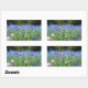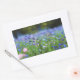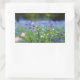 A field of cornflowers in shades of deep and pale blue, purple, lavender, and pink, with pale green leaves.