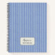 Personalised stylish notebook with your name, the title and date in elegant offblack calligraphy features a cornflower blue stripes pattern background. Perfect for sketching or keeping track of notes and ideas. Exclusively designed for you by Happy Dolphin Studio!