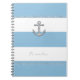 Cornflower Blue & White Stripes Diamond Anchor Notebook. Customise the front with or without text.