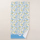 Cornflower Blue Yellow Floral Pattern Monogram Bath Towel Set