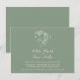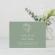 Monogram crossing hartwort and cornflower botanical line art wedding landscape invitation on sage green with simple white art and text. Personalise with your own initials, names, wedding date, time, venue, and further details. Original hand drawing and design by Sarah Trett for www.mylittleedenweddings.com