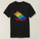 I give wanted to give this a 4 instead of a 5 because these Basic DARK T0shirts run unexpectedly SLIM or Narrow. Which is great if you do not have a potbelly, but I have a paunch. It isn't the shirt's fault that I've got a beer belly. The design and shirt itself is a quality cotton shirt. The color is more of a deep purple, but still a very pretty color. The Basic DARK T-shirts run a bit SLIMMER than the Basic Ts. The neck is a fraction narrower (or seems to be narrower) also. I'm a paunchy middle-aged woman and my neck is 12 inches (31cm) thick and the neckline fell about the same as in the photo of the man, and I had the desire to tug it a bit. So if you're a thick necked man or like loose shirts, be aware these are slimmer shirts. Once I get rid of my lockdown paunch it'll look great. The shirt washed well in cold water with no apparent bleeding. We don't have a dryer, so it hung dry. Did not shrink. Love the colors and the design. The design looks smaller on my shirt than it does on the model on-line. But still, it looks good on the shirt. The printing looks as it does on the model, just the size seems fractionally smaller. Washed garment in cold water, hung dry and design appeared unaffected.