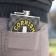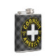Circle design in black, yellow and white featuring the Cornish flag and the Duke of Cornwall ensigns. With the text Cornish American around it.