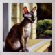 Cats have lived alongside man for millennia. Show the world your passion for cats with this portrait of a Cornish Rex on a porch.
