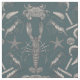 Crustacean damask, originally drawn in ink. Features edible crab, blue European lobster, common prawn, brown shrimp, common crab, scallop shell, mussel shell, razor shell and starfish.