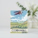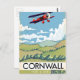 Cornwall For a Break, Beautiful vintage style travel poster art print of a retro style red bi plane flying over the landscape.