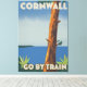 Cornwall go by train vintage beautiful style travel poster.